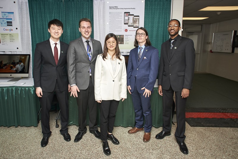 Team Herman Miller. Stefan Zhang, John Riley, Zhenru Wang, Aaron Eshleman, Matt Rhodes. | Team Humana. Gabe Apaza, Siru Chen, Linda Duong, Brendan Vande Kieft, Katie Sydlik-Badgerow. | Team Meijer. Chris Le, Jacob Kalt, Blaire Izbicki, Jack Studzinski, Sasha Morford. |